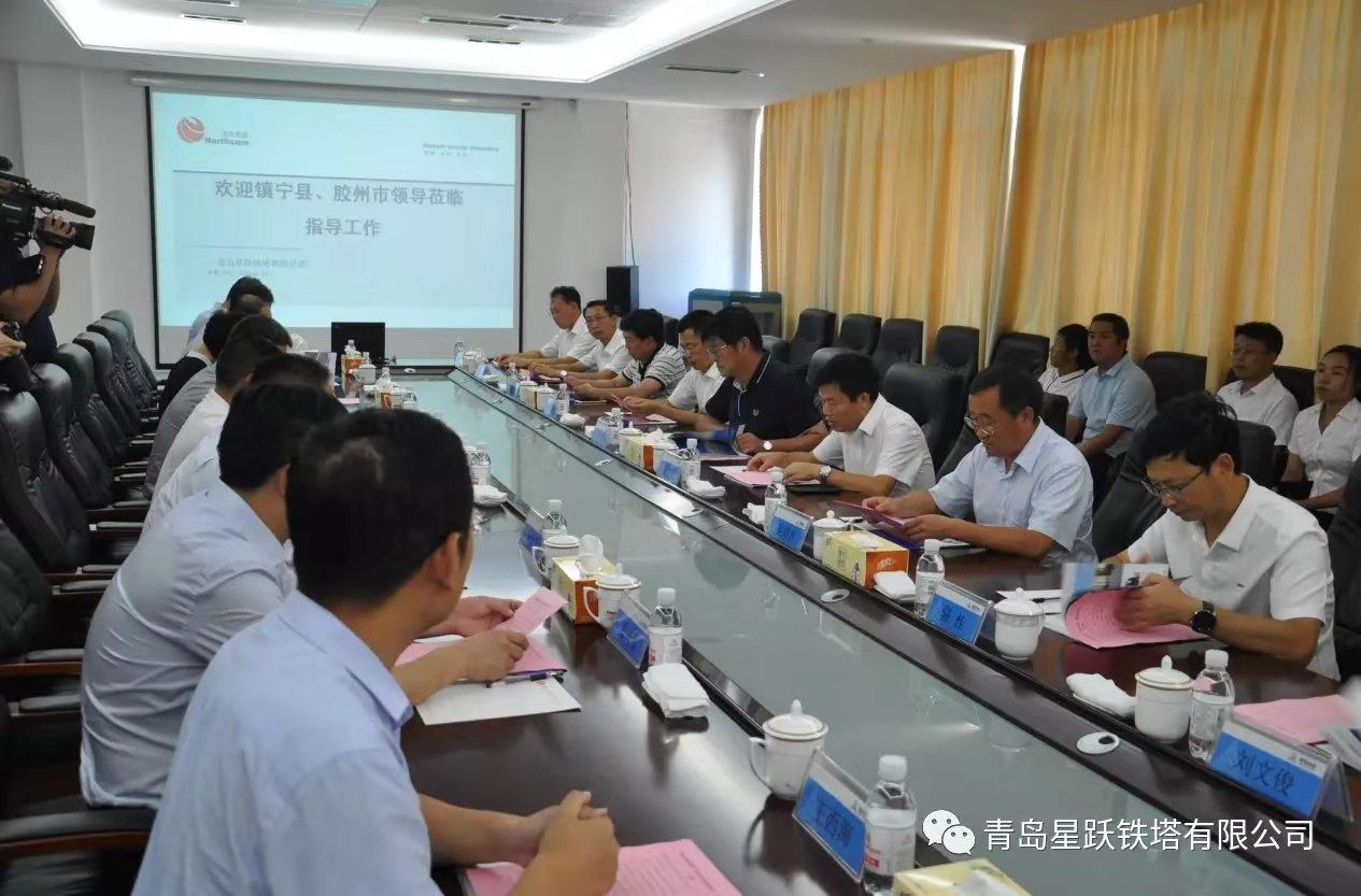 2019年8月22日上午,胶州市、镇宁县党政代表团,到青岛欢迎来到公海555000铁塔有限公司进行“东西部-就业帮扶”专项工作调研。